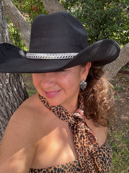 Polyester faux suede western hats perfect for game day or rodeos. All medium except navy is large. Bling hat bands included.